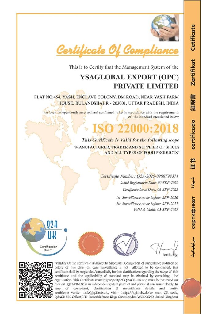 Our Certifications Our Certifications GST Certificate ISO 9001:2015 Certificate ISO 22000:2018 Certificate FSSAI Certificate IEC Certificate